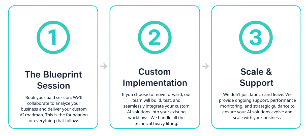 This isn't a sales call. It's a 90-minute, intensive strategic session with our AI experts dedicated to building your custom automation roadmap. We dive deep into your operations to provide a tangible, actionable plan you can own.
